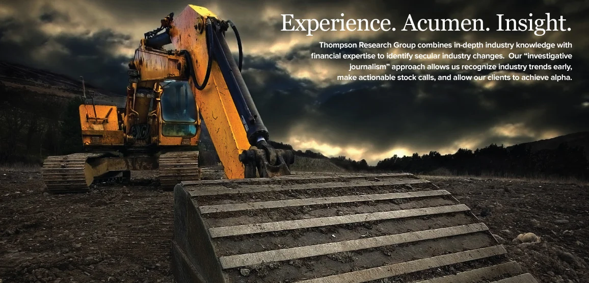 Thompson Research Group (TRG) provides original, fundamental insights and analysis in the industrial and construction materials sectors. TRG brings our network of industry relationships and ideas together to help our institutional investor and private equity clients. The firm does not provide equity trading or investment banking services. Unique qualities of TRG include: